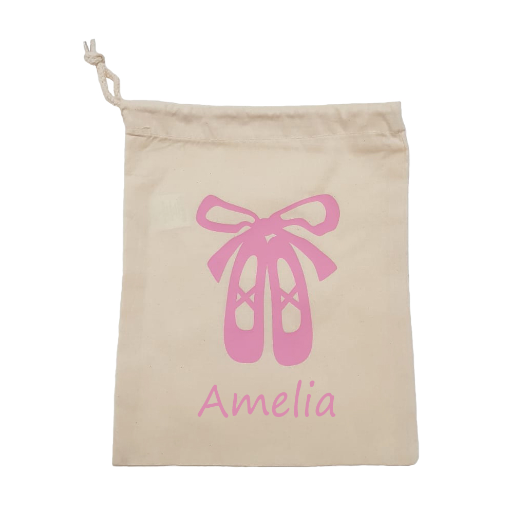 Personalised eco friendly cotton Ballet Shoes storage bag.